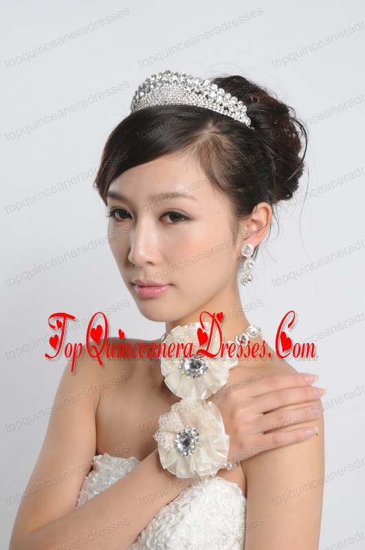 Rihinestones Necklace Tiara and Earrings Jewelry Set