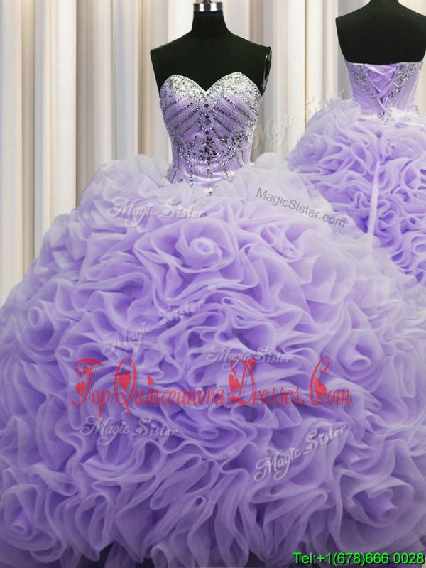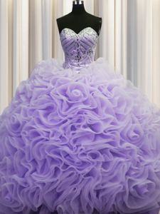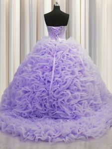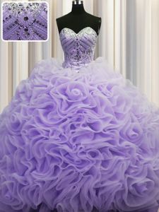 Rolling Flowers Lavender Lace Up Vestidos de Quinceanera Beading and Pick Ups Sleeveless Brush Train