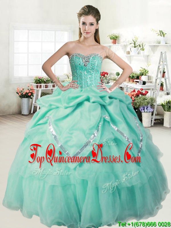 Romantic Apple Green Quinceanera Dress with Beading and Pick Ups for Spring