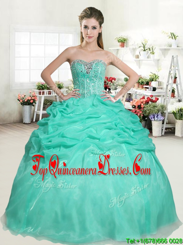 Romantic Apple Green Sweet 16 Dress with Beading and Pick Ups