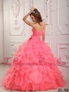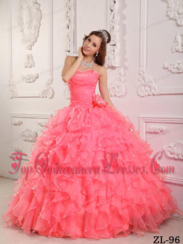 Romantic Ball Gown Sweetheart Floor-length Organza Beading Watermelon Quinceanera Dress