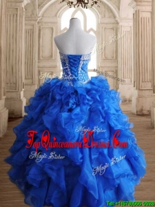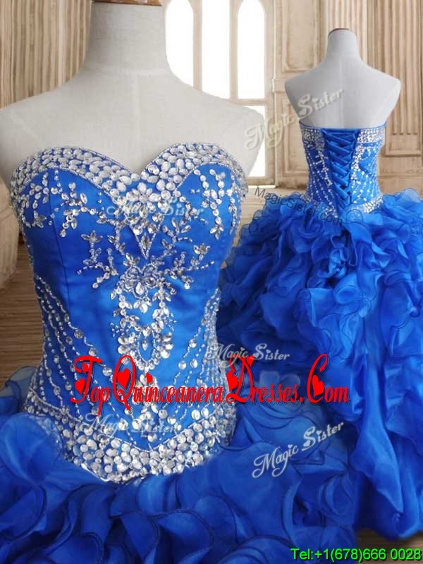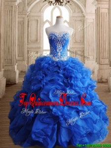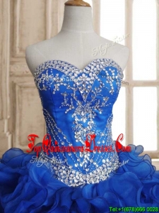 Romantic Beaded and Ruffled Royal Blue Sweet 16 Dress in Organza
