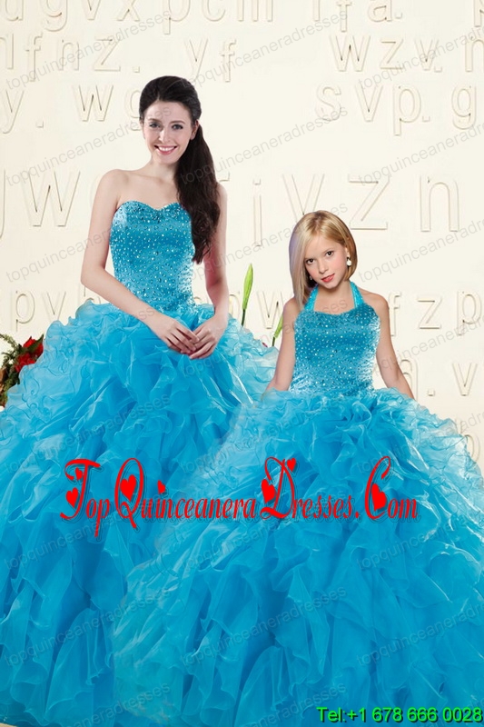 Romantic Blue Ball Gown Sequins and Ruffles Princesita Dress