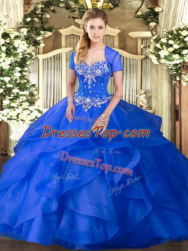 Romantic Blue Lace Up Quinceanera Gown Beading and Ruffles Sleeveless Floor Length