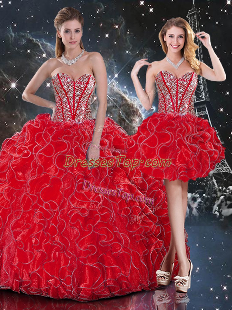 Romantic Floor Length Wine Red Sweet 16 Dress Organza Sleeveless Beading and Ruffles