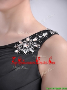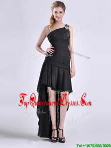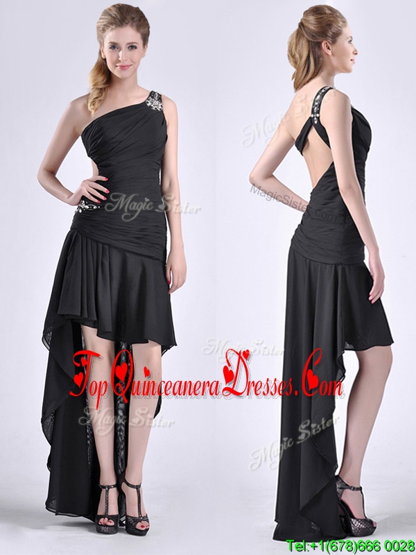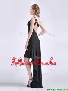Romantic High Low One Shoulder Black Dama Dress with Criss Cross