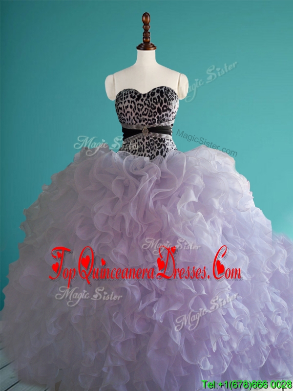 Romantic Leopard Big Puffy Quinceanera Dress with Beading and Ruffles
