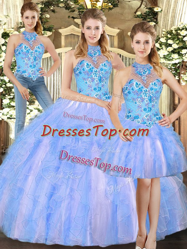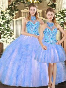 Romantic Multi-color Ball Gowns Tulle Halter Top Sleeveless Embroidery Floor Length Lace Up Sweet 16 Dresses