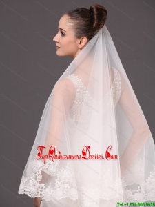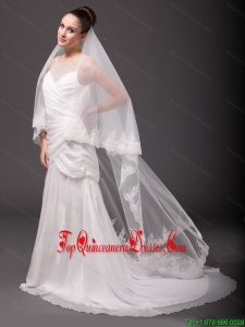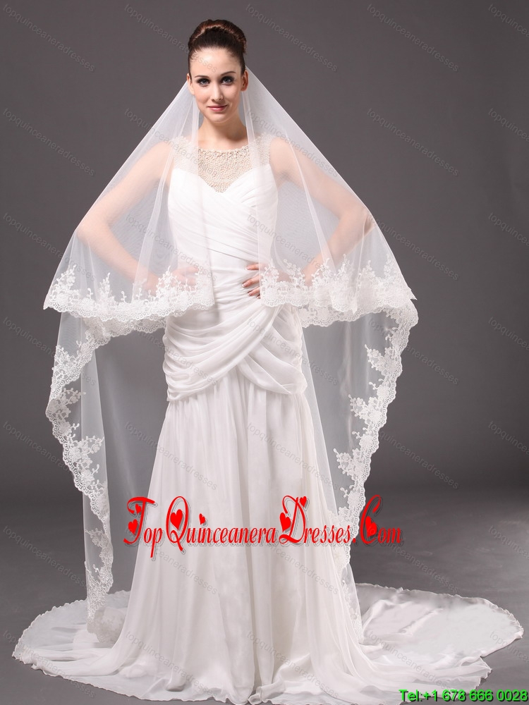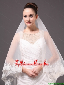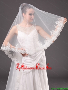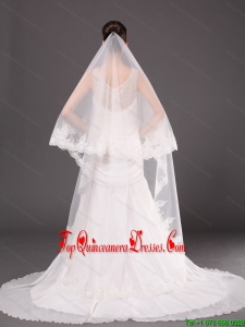 Romantic One-tier Cathedral Wedding Veil With Lace Applique Edge