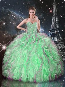 Romantic Organza Sleeveless Floor Length Sweet 16 Dress and Beading and Ruffles