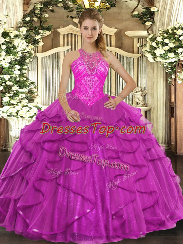 Romantic Organza Sleeveless Floor Length Vestidos de Quinceanera and Beading and Ruffles