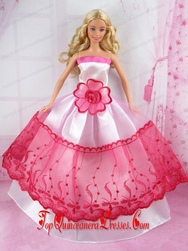 Romantic Pink and Red Princess Dress With Flower Made to Fit the Barbie Doll