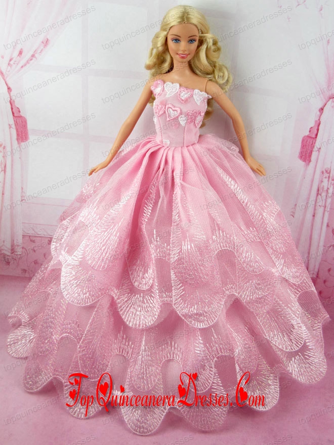 Romantic Pink Gown With Embroidery Dress For Barbie Doll
