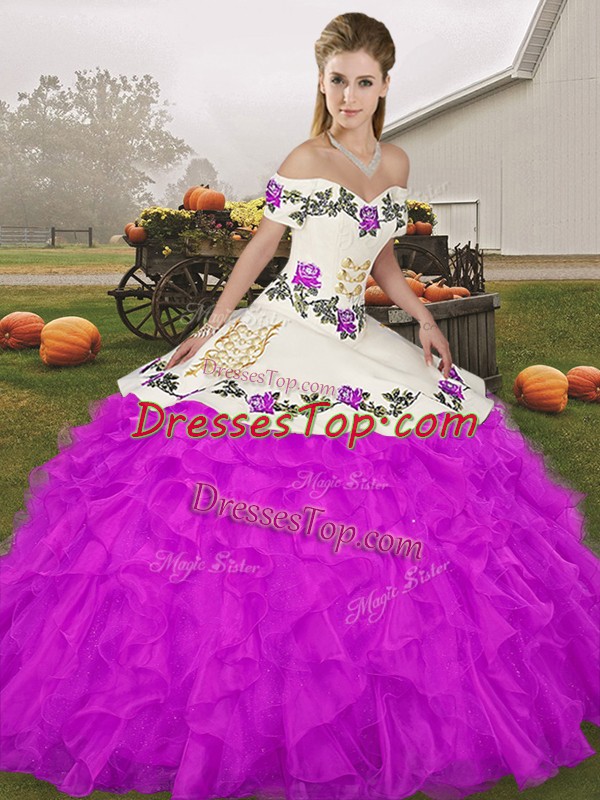 Romantic Purple Off The Shoulder Lace Up Embroidery and Ruffles Sweet 16 Quinceanera Dress Sleeveless