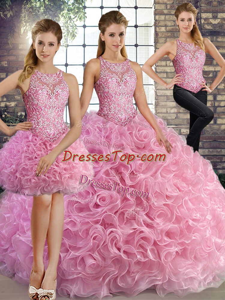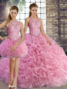 Romantic Scoop Sleeveless Fabric With Rolling Flowers 15 Quinceanera Dress Beading Lace Up