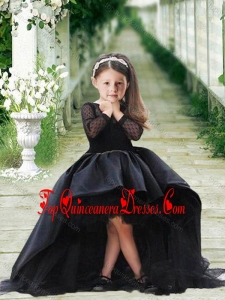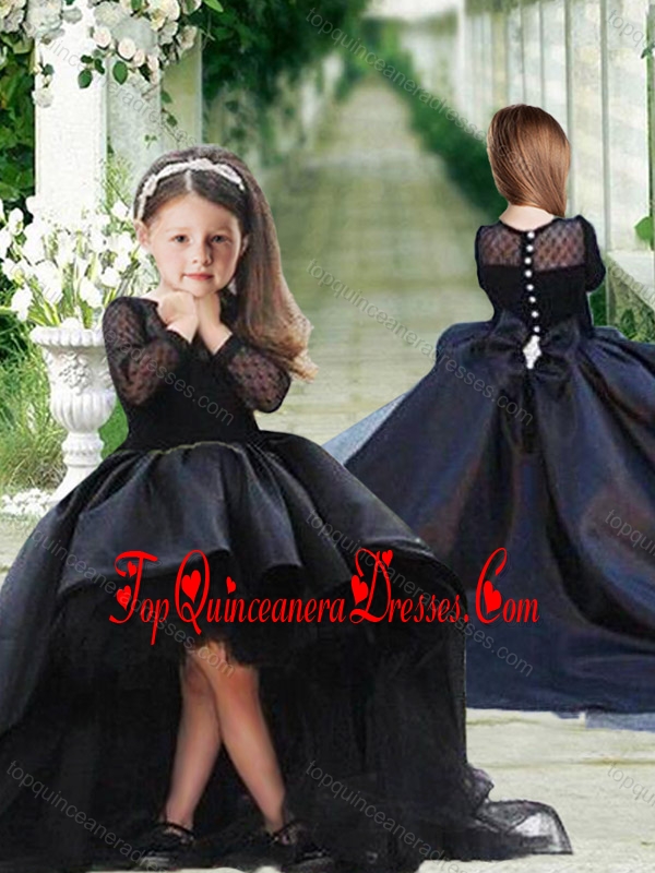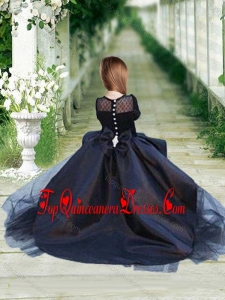 Romantic See Through Long Sleeves New Arrival Kid Pageant Dress in Navy Blue