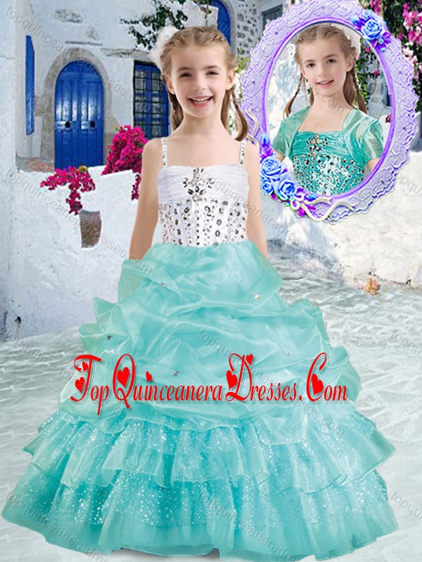 Romantic Spaghetti Straps New Arrival Kid Pageant Dresses with Beading and Bubles