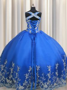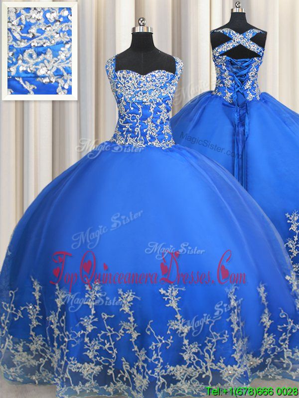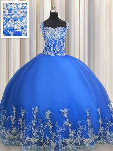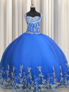 Romantic Straps Sleeveless Lace Up Sweet 16 Dresses Blue Tulle