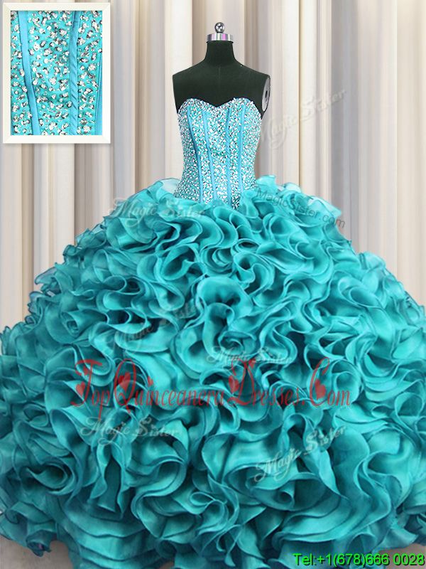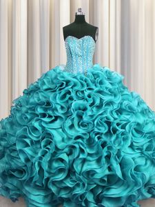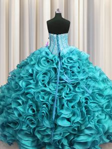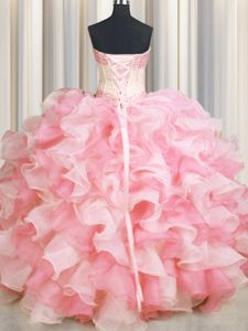 Romantic Visible Boning Two Tone Organza Sweetheart Sleeveless Lace Up Beading and Ruffles Quinceanera Dress in Pink And White