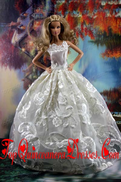 Romantic White Gown With Embroidery Dress For Barbie Doll