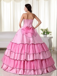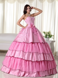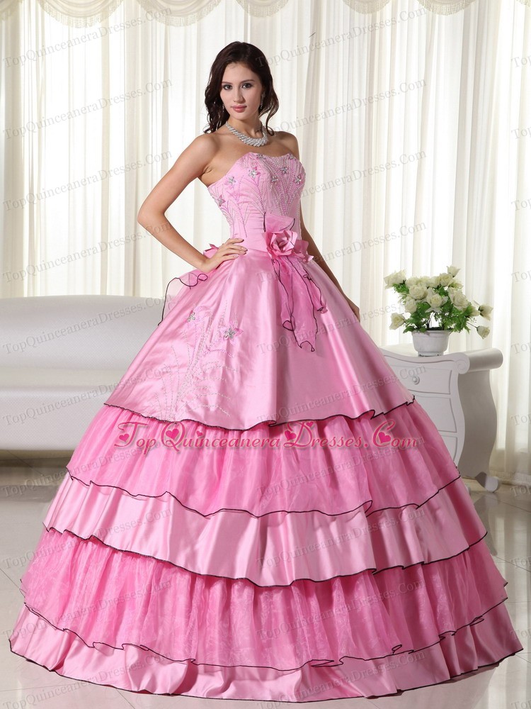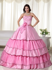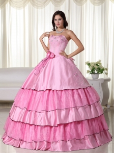 Rose Pink 2014 Strapless Floor-length Beading Quinceanera Dress