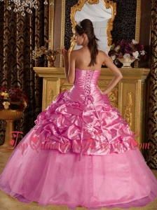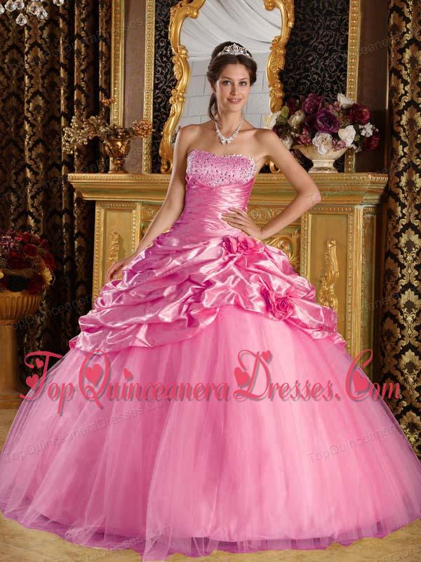 Rose Pink Ball Gown Floor-length Taffeta and Tulle Beading Quinceanera Dress