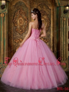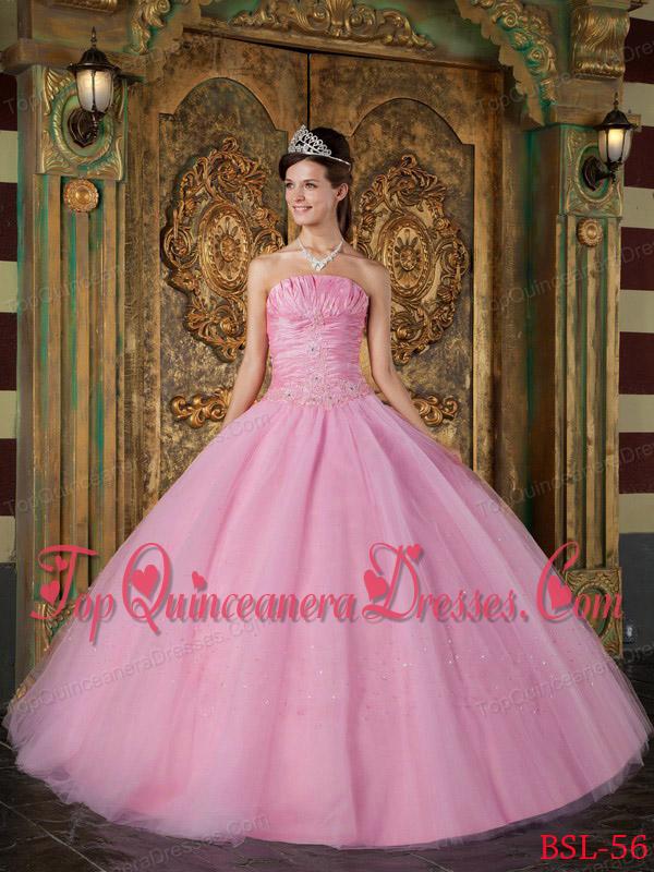 Rose Pink Ball Gown Strapless Floor-length Appliques Tulle Fashionable Quinceanera Dress