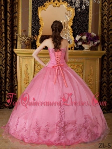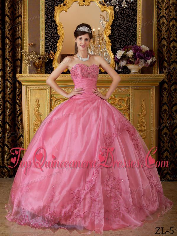 Rose Pink Ball Gown Sweetheart Floor-length Appliques Organza Quinceanera Dress