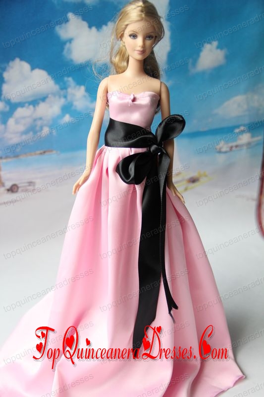 Rose Pink Party Dress With Sash For Barbie Doll Dress
