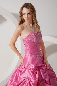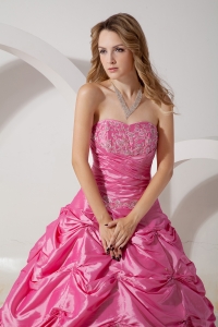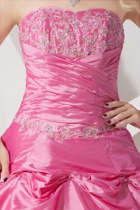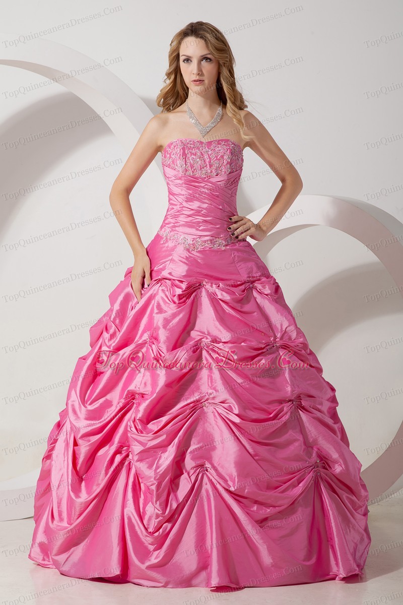 Rose Pink Strapless Appliques Pick-ups Quinceanera Dress