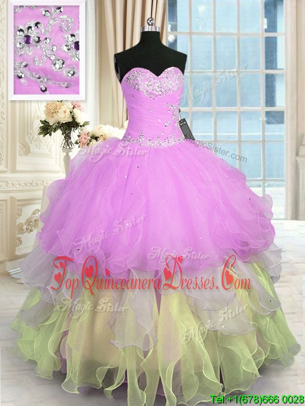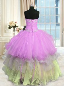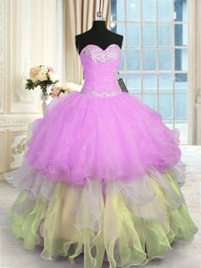 Rose Pink Sweetheart Neckline Beading and Ruffles Sweet 16 Quinceanera Dress Sleeveless Lace Up