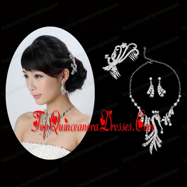 Round shaped Rotary Crystal Jewelry Set Including Necklace And Headpiece