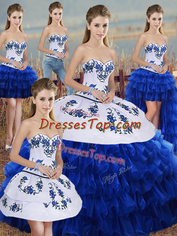 Royal Blue 15 Quinceanera Dress Military Ball and Sweet 16 and Quinceanera with Embroidery and Ruffled Layers and Bowknot Sweetheart Sleeveless Lace Up