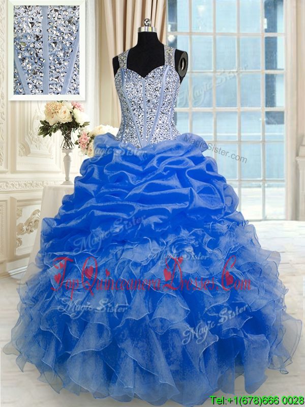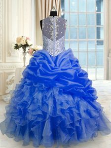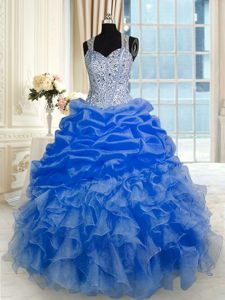 Royal Blue Ball Gown Prom Dress Military Ball and Sweet 16 and Quinceanera and For with Beading and Ruffles and Pick Ups Straps Sleeveless Zipper