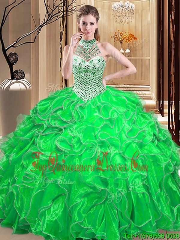 Royal Blue Ball Gowns Organza Strapless Sleeveless Embroidery and Ruffles Floor Length Lace Up Ball Gown Prom Dress