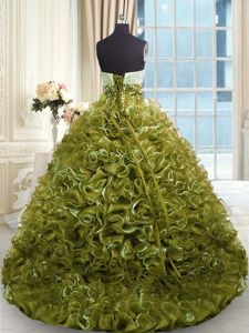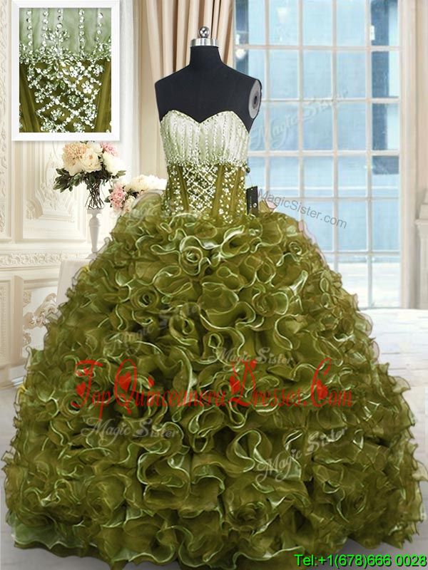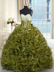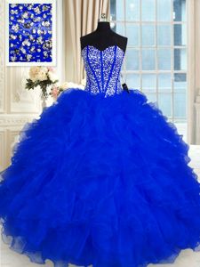 Royal Blue Ball Gowns Organza Sweetheart Sleeveless Beading and Ruffles Floor Length Lace Up Quinceanera Gowns