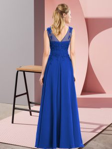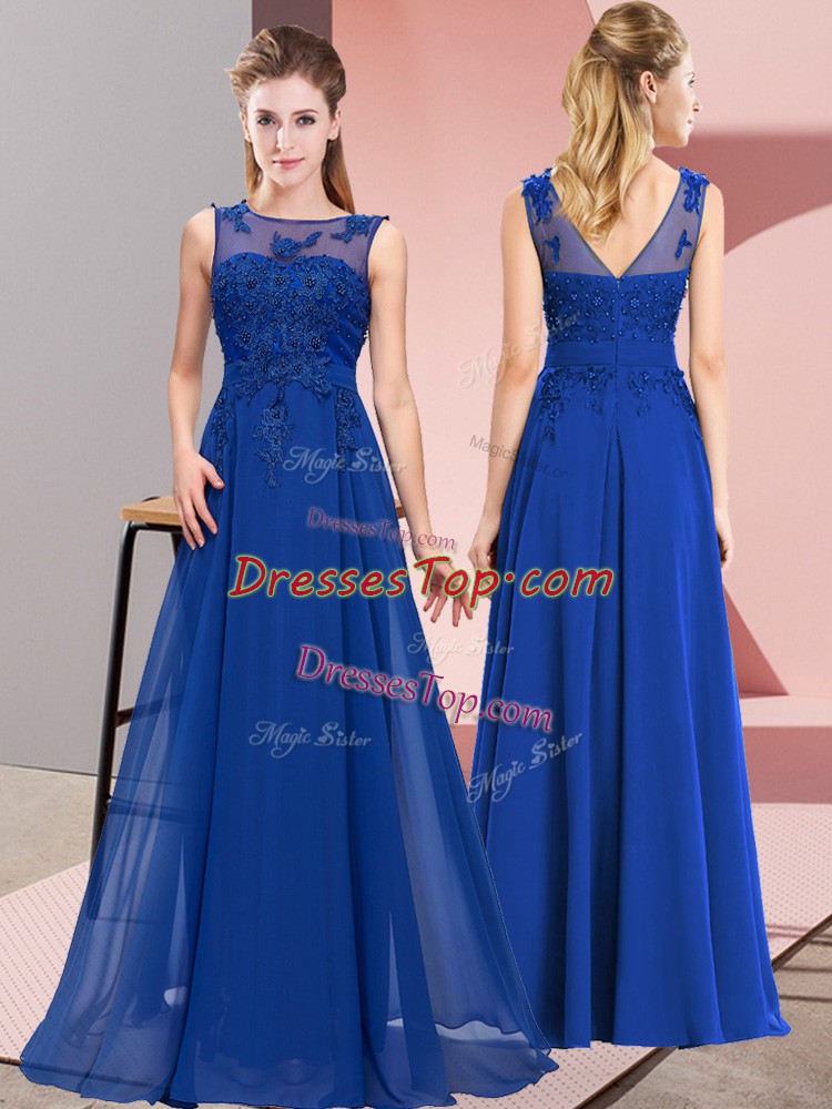 Royal Blue Empire Scoop Sleeveless Chiffon Floor Length Zipper Beading and Appliques Damas Dress