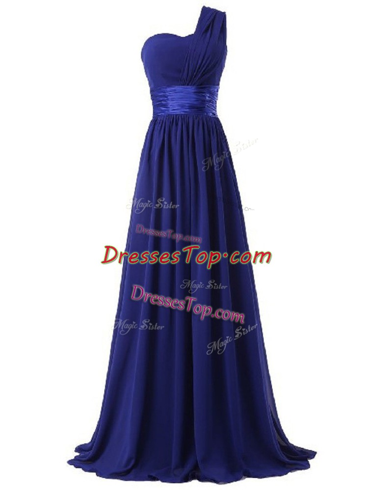 Royal Blue Lace Up Dama Dress Ruching Sleeveless Floor Length