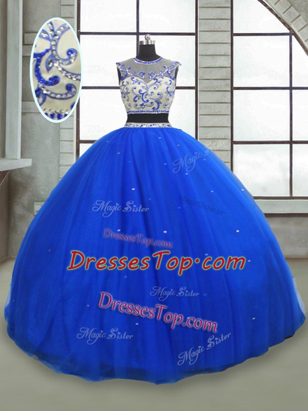 Royal Blue Lace Up Scoop Beading Quinceanera Gown Tulle Sleeveless