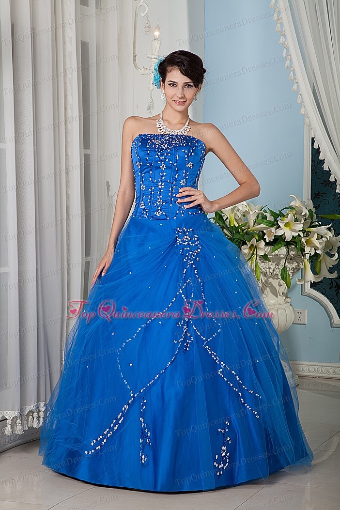 Royal Blue Quinceanera Dress A-line Strapsless Beading