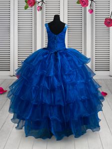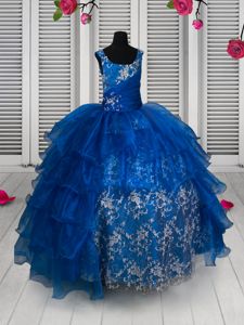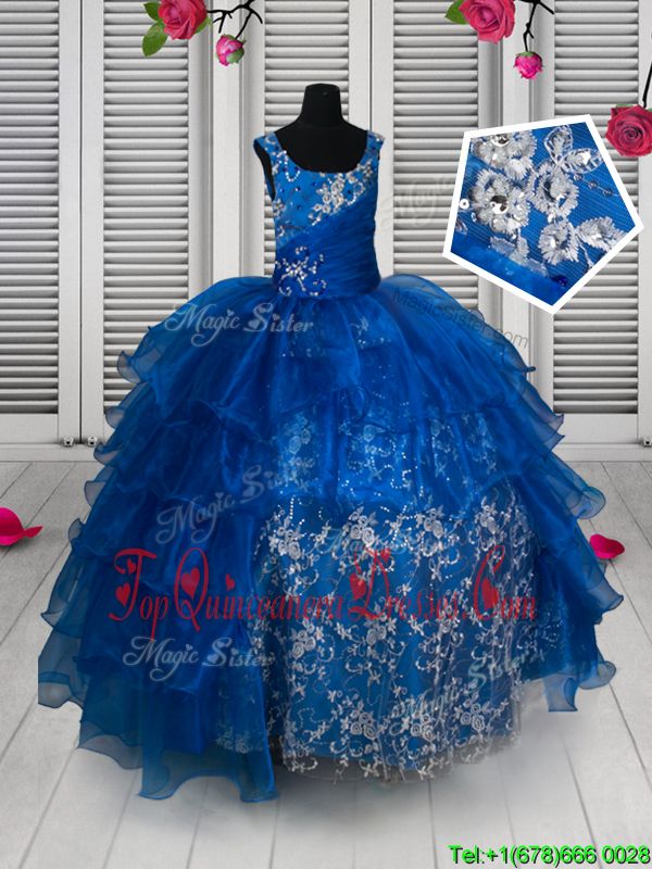 Royal Blue Scoop Neckline Beading and Lace and Ruffled Layers Kids Formal Wear Sleeveless Lace Up