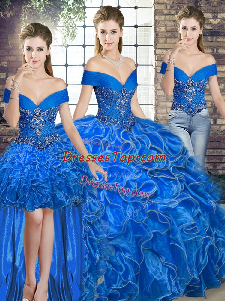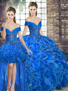 Royal Blue Sleeveless Beading and Ruffles Floor Length Sweet 16 Quinceanera Dress