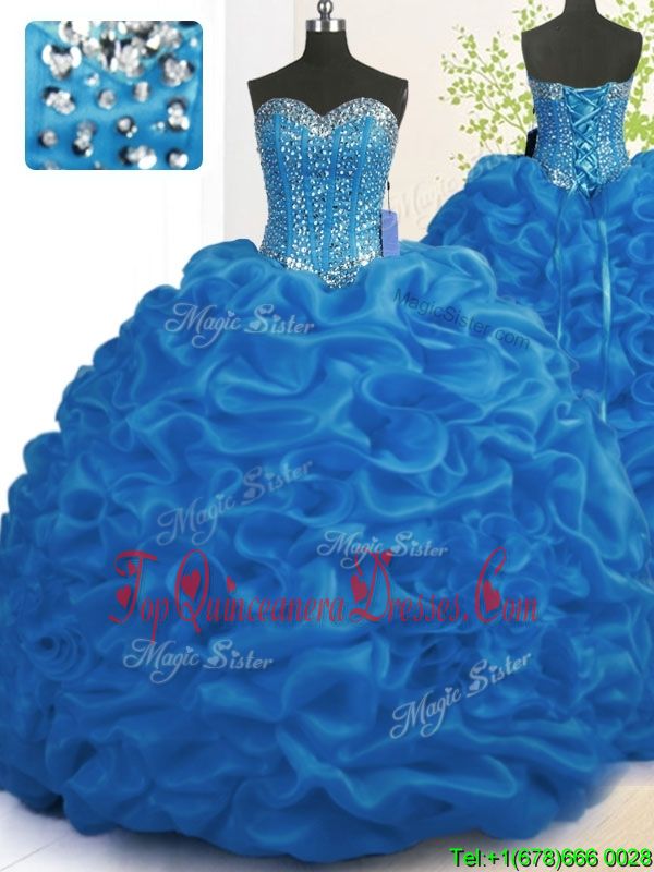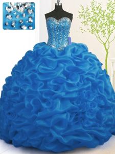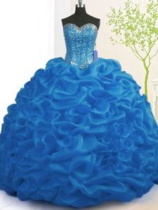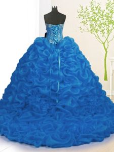 Royal Blue Sleeveless Organza Brush Train Lace Up Quinceanera Gown for Military Ball and Sweet 16 and Quinceanera