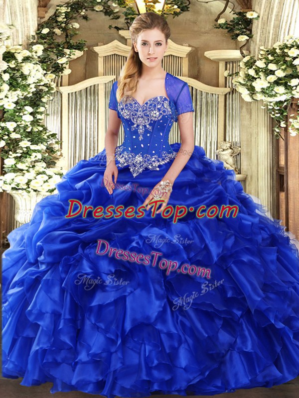 Royal Blue Sleeveless Organza Lace Up 15th Birthday Dress for Military Ball and Sweet 16 and Quinceanera