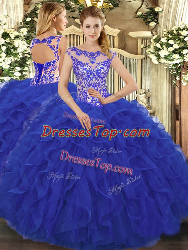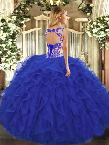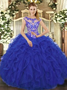 Royal Blue Sleeveless Organza Lace Up Quinceanera Gown for Sweet 16 and Quinceanera