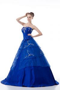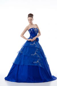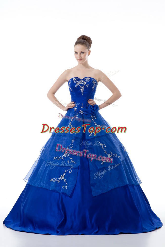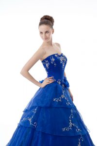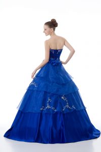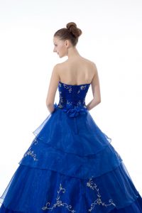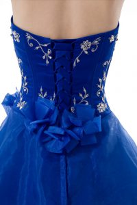 Royal Blue Sleeveless Organza Lace Up Quinceanera Gown for Sweet 16 and Quinceanera