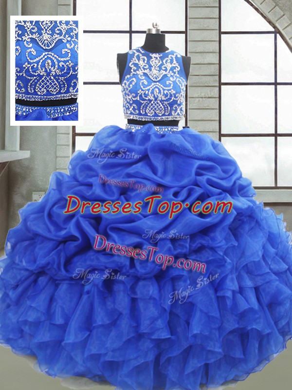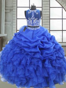 Royal Blue Sleeveless Organza Zipper Sweet 16 Dresses for Military Ball and Sweet 16 and Quinceanera