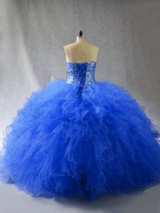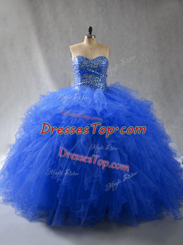 Royal Blue Sweet 16 Quinceanera Dress Sweet 16 and Quinceanera with Beading and Ruffles Sweetheart Sleeveless Lace Up