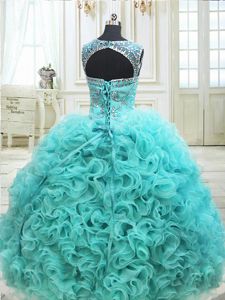 Royal Blue Sweetheart Lace Up Beading and Ruffled Layers and Pick Ups Quinceanera Dresses Brush Train Sleeveless