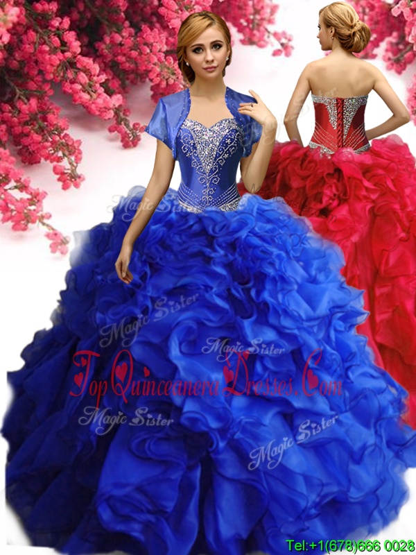 Royal Blue Sweetheart Lace Up Beading and Ruffles Sweet 16 Dresses Sleeveless